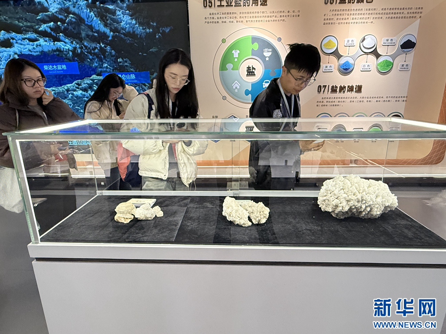 采访团在盐湖博物馆参观。新华网 鱼昊 摄