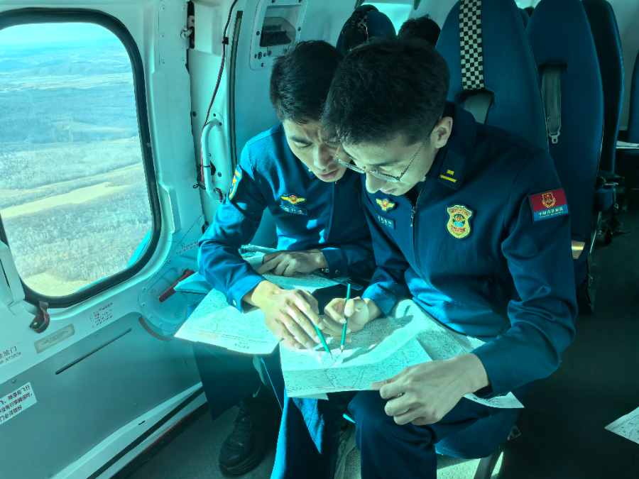 飞行途中,学员自主完成空中识图训练。(国家消防救援局青海机动队伍供图)