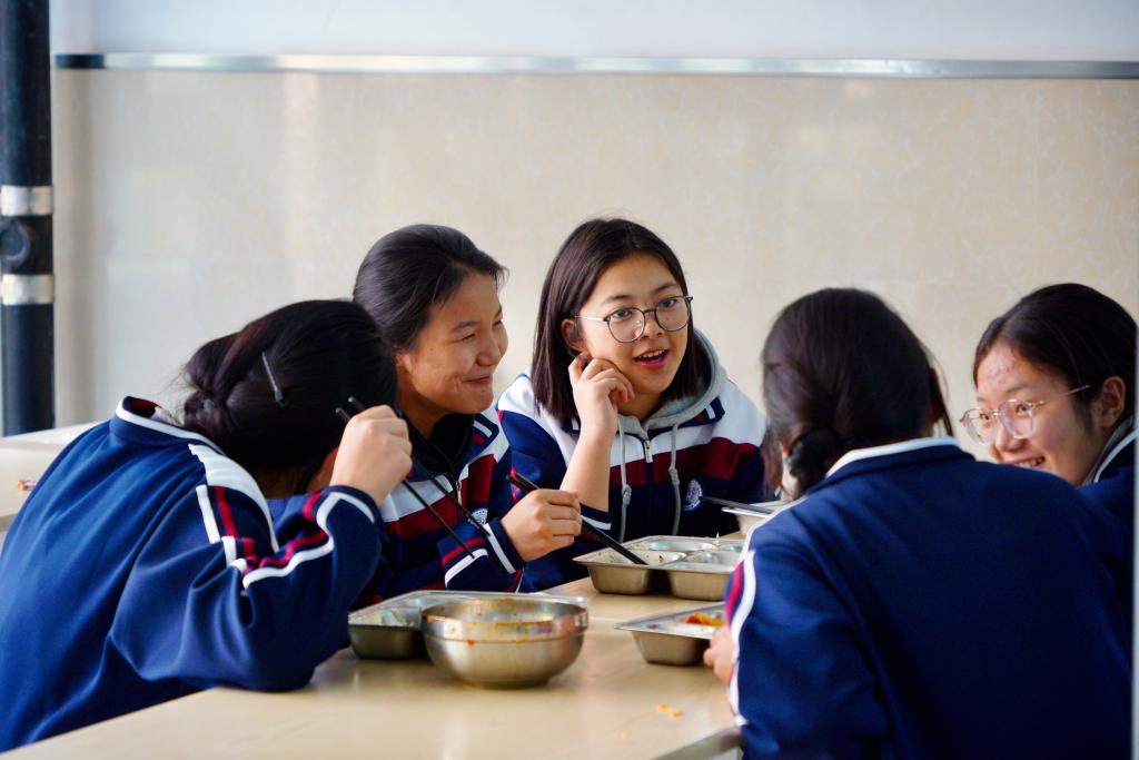 11月7日,在青海省西宁市果洛西宁民族中学,学生在食堂吃午饭。新华社记者 张子琪 摄
