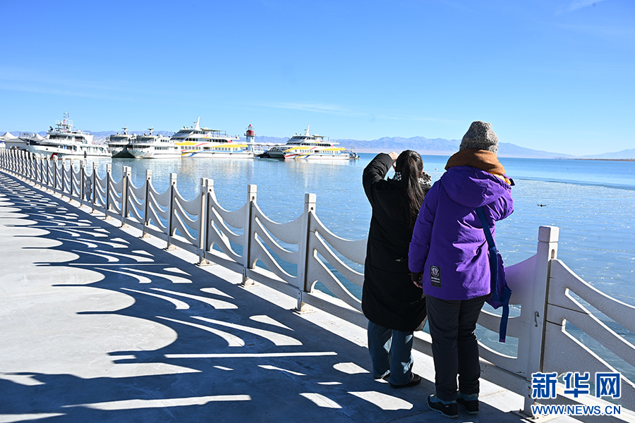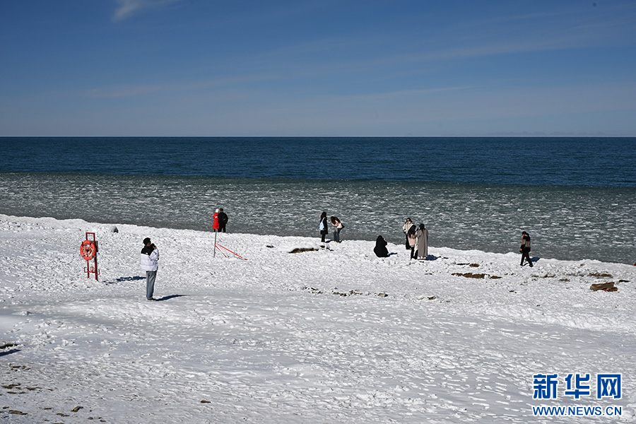 进入12月后,青海湖湖面逐渐冰封,冰面上自然形成了冰裂纹和冰泡,在阳光照射下闪烁着光芒。冰与水交融的独特景致吸引游客纷至沓来,定格这份高原冬日的限定美景。