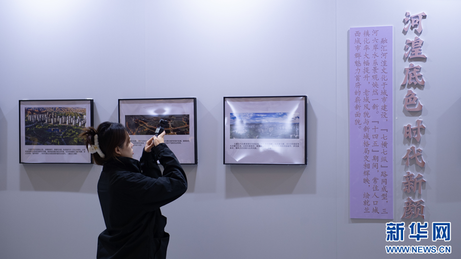“国社之镜·世纪光影”新闻摄影展暨“镜揽河湟·影耀乐都”主题摄影展举办地海东市图书馆。新华网 潘彬彬 摄