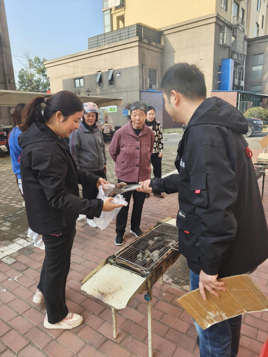 活動(dòng)當(dāng)日,工作人員早早就架起炭火爐,將精心采購的新鮮紅薯整齊碼放。隨著炭火漸旺,紅薯表皮逐漸焦黃,香甜氣息彌漫整個(gè)小區(qū)。剛出爐的紅薯色澤金黃、外酥里糯,引得業(yè)主們紛紛駐足領(lǐng)取。老人們捧著熱乎的紅薯,笑得合不攏嘴;孩子們則迫不及待地剝開焦皮,邊吃邊笑。“這紅薯比家里烤的還香!”業(yè)主李阿姨豎起大拇指,“物業(yè)想得真周到,讓我們這些小區(qū)業(yè)主心里也暖乎乎的。”